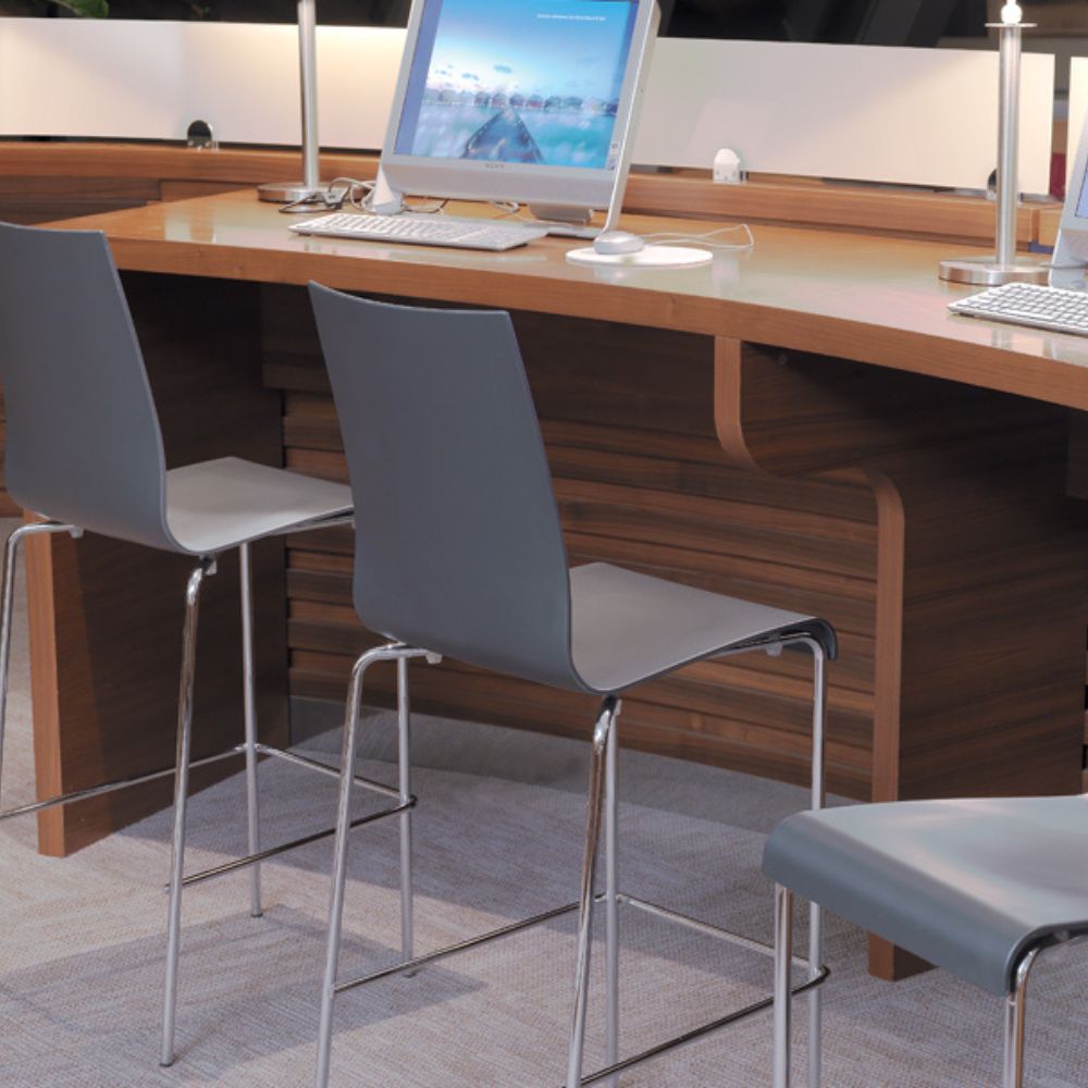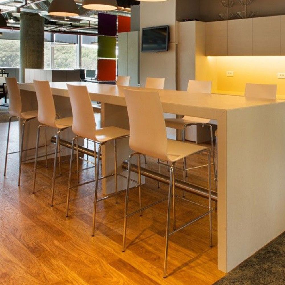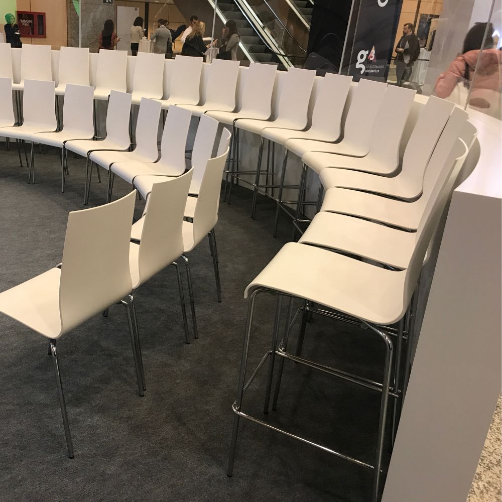 Stapelbarer Barhocker mit Polypropylen-Sitz und Rohrstruktur aus verchromtem oder lackiertem Stahl. UV-stabilisiert. Es wurde speziell für öffentliche Bereiche entwickelt und eignet sich sowohl für den privaten als auch für den professionellen Gebrauch. Ausgelegt für eine maximale Belastung von 200 kg.