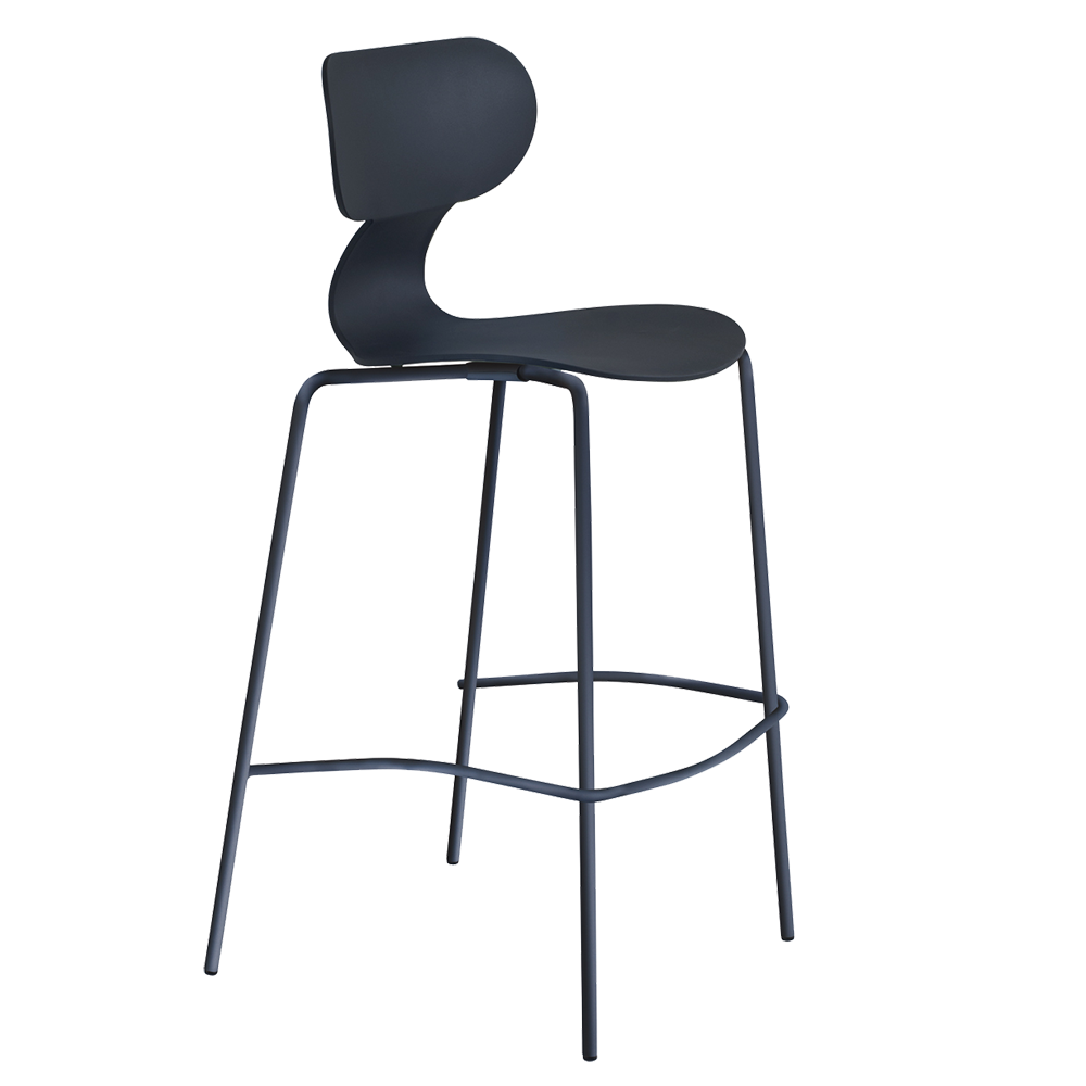 Yugo-S Bar - stapelbarer Barhocker, Sitz aus glasfaserverstärktem Polypropylen ist ein starkes und elastisches Material, das Rückenflexibilität und ergonomisches Design bietet. UV-stabilisiert. Metallrahmen. kann sowohl im Innen- als auch im Außenbereich mit lackierten Beinen verwendet werden. Ausgelegt für eine Belastung von bis zu 200 kg. Alle Papatya-Produkte, die mit der Berechnung des Einsatzes im öffentlichen Raum hergestellt werden, sind für maximale Belastungen ausgelegt.