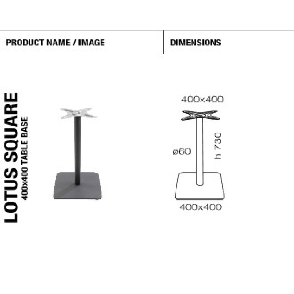 Lotus Square Tischfuß 45x45x73 schwarz – unterstützung für Tisch im modernen Stil. Die Brillanz und Anmut des Sockels für Tisch bringt besondere Harmonie und Eleganz ins Interieur. Perfekt kombinierbar mit Stühlemi, und die Tischplatte kann aus jedem Material Ihrer Wahl gewählt werden: Holz, Marmor, strapazierfähiger Teakholz-Kunststoff, MDF, laminierte Spanplatte und andere. Eine einfache Montage einer Stütze an einer Tischplatte erfordert keine besonderen Kenntnisse, dank dessen können Sie sich ganz einfach einen stilvollen Büro- oder Esstisch bauen. Kann draußen und drinnen verwendet werden.