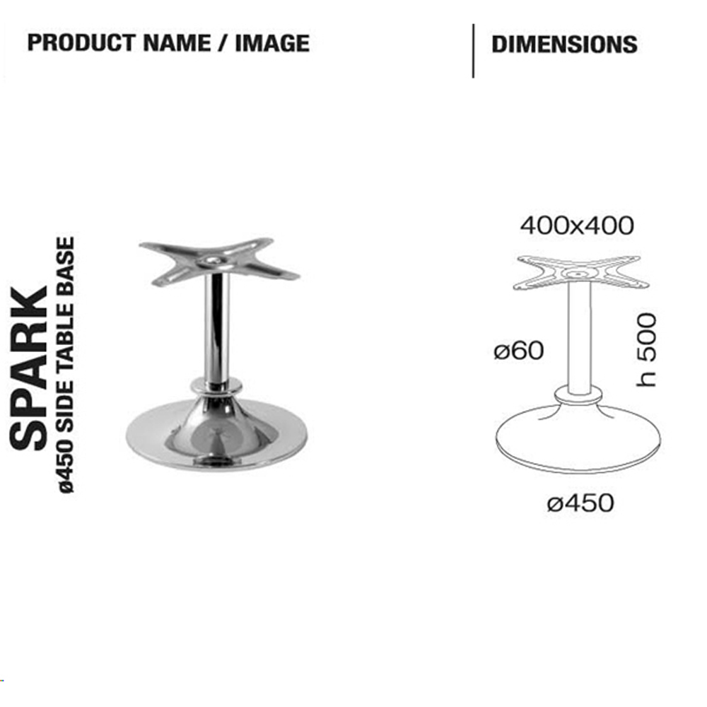 Spark Tischfuß d45x50 cm schwarz – unterstützung für Tisch im modernen Stil. Die Brillanz und Anmut des Sockels für Tisch bringt besondere Harmonie und Eleganz ins Interieur. Perfekt kombinierbar mit Stühlemi, und die Tischplatte kann aus jedem Material Ihrer Wahl gewählt werden: Holz, Marmor, strapazierfähiger Teakholz-Kunststoff, MDF, laminierte Spanplatte und andere. Eine einfache Montage einer Stütze an einer Tischplatte erfordert keine besonderen Kenntnisse, dank dessen können Sie sich ganz einfach einen stilvollen Büro- oder Esstisch bauen. Kann draußen und drinnen verwendet werden.