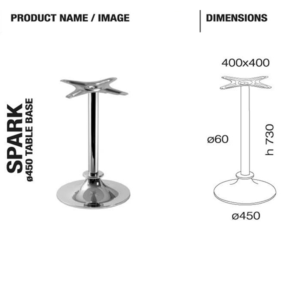 Spark Tischfuß d45x73 cm schwarz – unterstützung für Tisch im modernen Stil. Die Brillanz und Anmut des Sockels für Tisch bringt besondere Harmonie und Eleganz ins Interieur. Perfekt kombinierbar mit Stühlemi, und die Tischplatte kann aus jedem Material Ihrer Wahl gewählt werden: Holz, Marmor, strapazierfähiger Teakholz-Kunststoff, MDF, laminierte Spanplatte und andere. Eine einfache Montage einer Stütze an einer Tischplatte erfordert keine besonderen Kenntnisse, dank dessen können Sie sich ganz einfach einen stilvollen Büro- oder Esstisch bauen. Kann draußen und drinnen verwendet werden.
