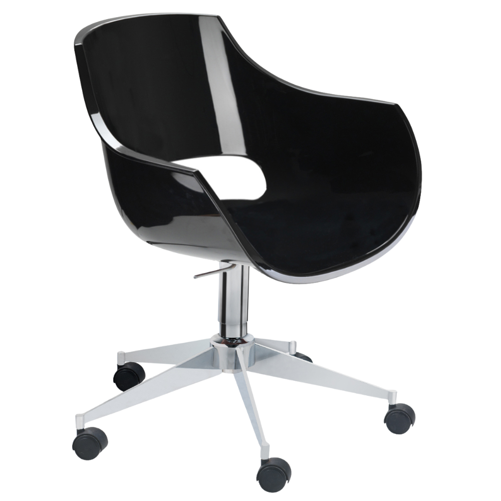 Opal Chief Sessel aus Polycarbonat mit höhenverstellbarem Drehfuß auf Rollen, 3 Fußvarianten zur Auswahl. UV-stabilisiert. Der Opal-Sessel ist auch in einer vollgepolsterten Version erhältlich. Es bereichert Tischets und verleiht dem Interieur einen besonderen Charakter.