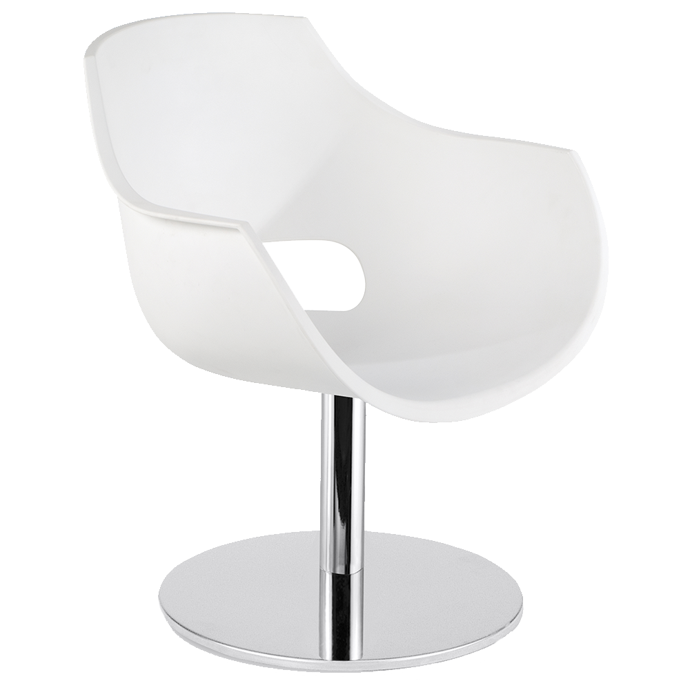 Ein stylischer Stuhl Opal-M Pro aus glasfaserverstärktem Polypropylen, kombiniert mit einem Drehständer aus Stahl. Die Polymere, aus denen die Stühle hergestellt werden, enthalten Schutz vor UV-Strahlen und antistatische Zusätze. Es wird im Innenbereich verwendet. Alle Papatya-Produkte, die mit der Berechnung des Einsatzes im öffentlichen Raum hergestellt werden, sind für maximale Belastungen ausgelegt.
