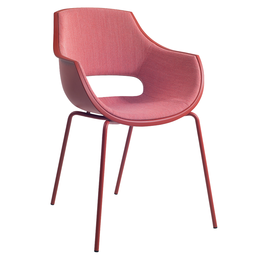 Opal-ML PRO halbrunder Design-Stuhl mit ergonomischer Form, ausgestattet mit bequemem Sitz und Rückenlehne. Der Stuhl ist nahtlos mit Stoffpolsterung. Die Beine sind aus Metall und mit Polyurethanstopfen ausgestattet. Der Stuhl fügt sich harmonisch in das Interieur des Wohnzimmers, Schlafzimmers, der Küche und des Essbereichs ein. Er kann verwendet werden, um ein Café, ein Restaurant, eine Arbeitskabine oder ein Büro zu dekorieren. Der Stuhl ist für den Innen- und Außenbereich bestimmt.