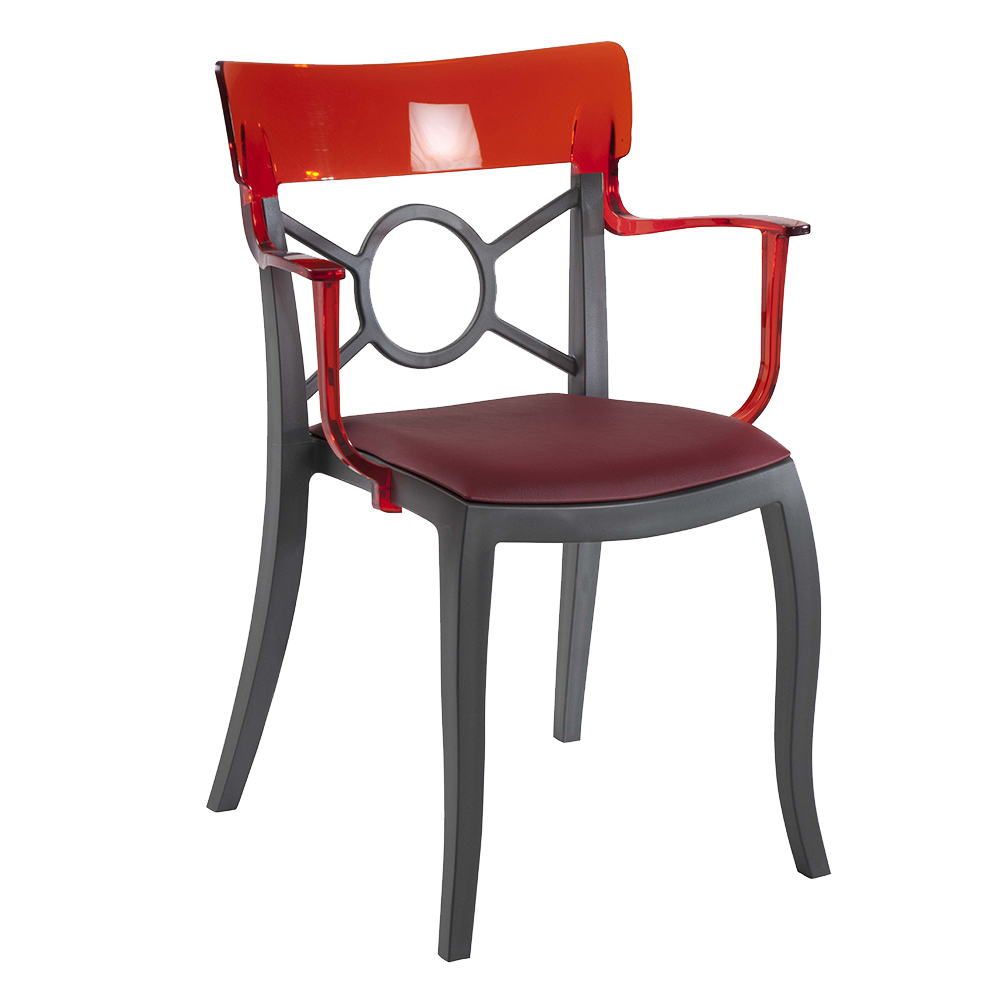 Der Opera-K-Stuhl sieht elegant und originell aus, dank einer gelungenen Kombination aus Form, Farbe und Textur. Die Oberseite der Rückenlehne und Armlehnen sind aus Polycarbonat, die Basis - Polypropylen, Polyurethanstopfen an den Beinen - langlebige Materialien, widerstandsfähig gegen Kratzer, mechanische Beschädigungen, Feuchtigkeit, UV-Strahlung.Es sieht schön und stilvoll in verschiedenen Innenräumen von Wohnzimmern, Schlafzimmern, Küchen und Esszimmern aus Bereiche und wird auch die Sommerterrasse, Cafés und Restaurants perfekt ergänzen. Gestaltet für den Innen- und Außenbereich.