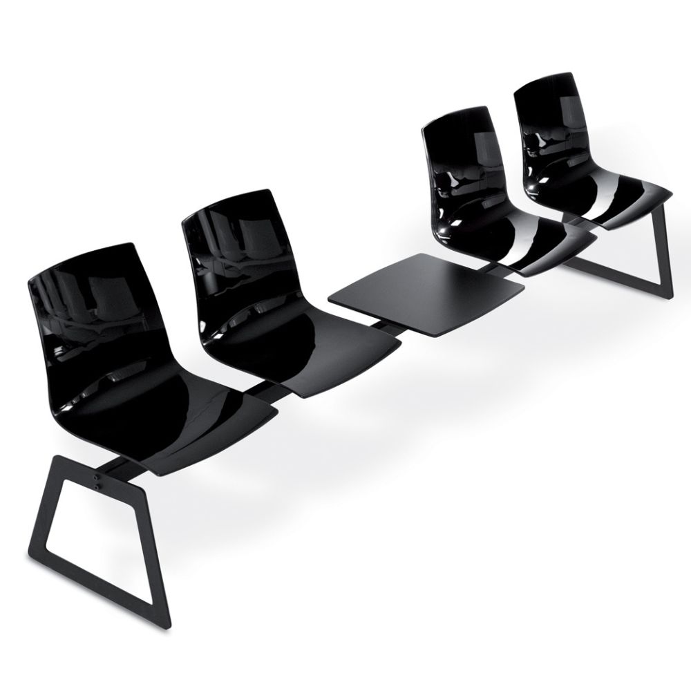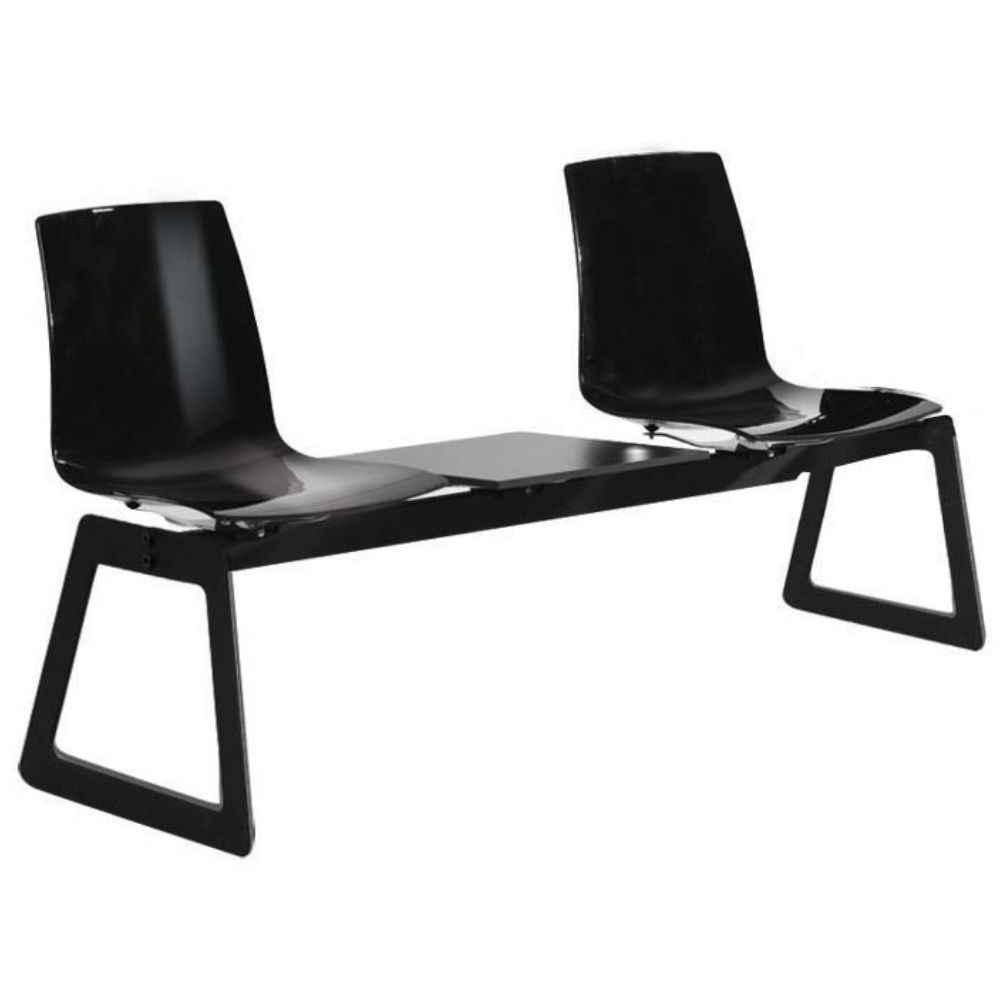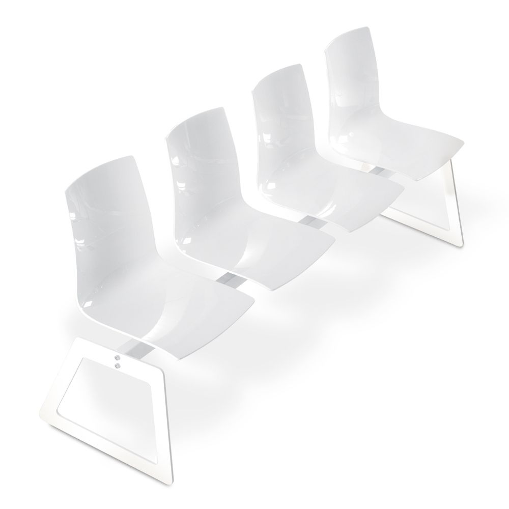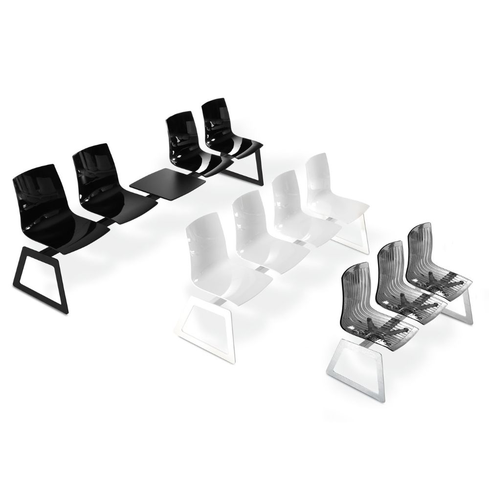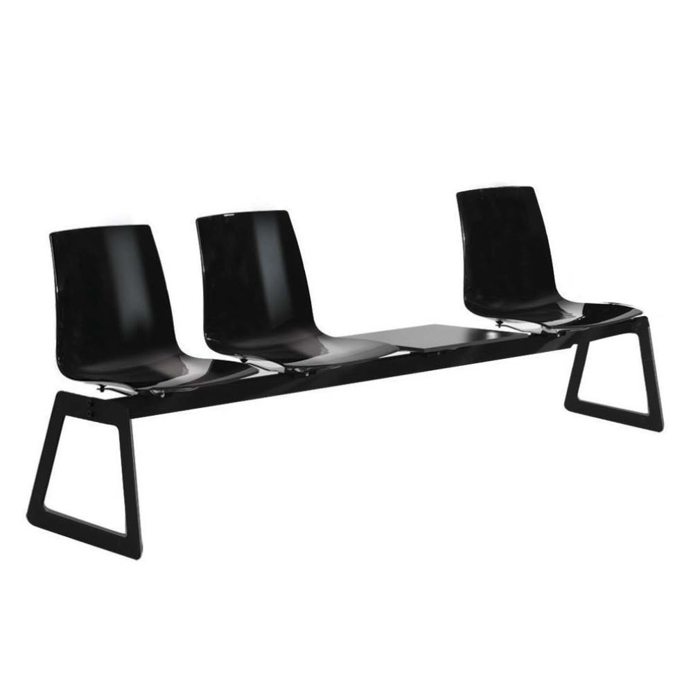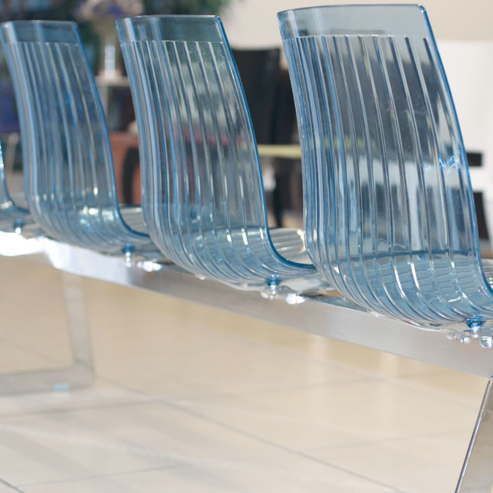 Die Bank ist für Wartezimmer geeignet, sie besteht aus transparentem Polycarbonat, die Basis besteht aus einem Stahlrahmen. Die Bank wird mit 2, 3, 4 und 5 Sitzen angeboten, es ist möglich, ein kompaktes horizontales Regal für Dinge zu installieren, alle Herstellungsoptionen können in der Preisliste oder vom Manager angegeben werden. Die Polymere, aus denen die Stühle hergestellt sind, enthalten Schutz vor UV-Strahlen und antistatische Zusätze, wodurch sie sowohl im Innen- als auch im Außenbereich verwendet werden können (mit Ausnahme von Chrombasen). Ausgelegt für eine Belastung von bis zu 700 kg.