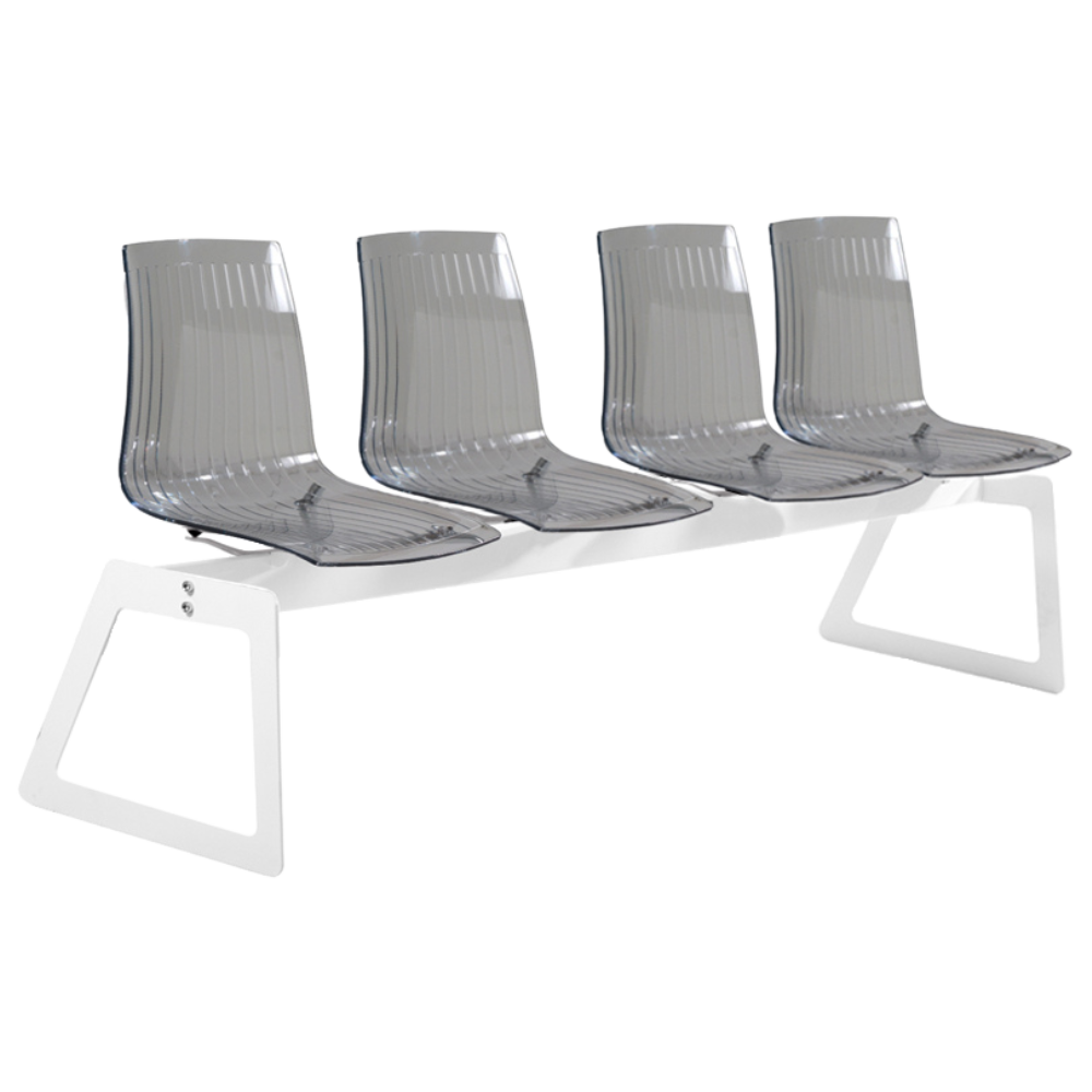 Die Bank ist für Wartezimmer geeignet, sie besteht aus transparentem Polycarbonat, die Basis besteht aus einem Stahlrahmen. Die Bank wird mit 2, 3, 4 und 5 Sitzen angeboten, es ist möglich, ein kompaktes horizontales Regal für Dinge zu installieren, alle Herstellungsoptionen können in der Preisliste oder vom Manager angegeben werden. Die Polymere, aus denen die Stühle hergestellt sind, enthalten Schutz vor UV-Strahlen und antistatische Zusätze, wodurch sie sowohl im Innen- als auch im Außenbereich verwendet werden können (mit Ausnahme von Chrombasen). Ausgelegt für eine Belastung von bis zu 700 kg.
