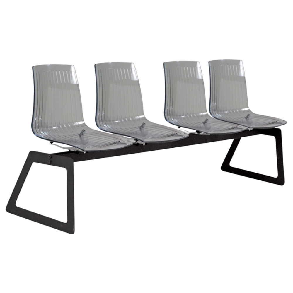 Die Bank ist für Wartezimmer geeignet, sie besteht aus transparentem Polycarbonat, die Basis besteht aus einem Stahlrahmen. Die Bank wird mit 2, 3, 4 und 5 Sitzen angeboten, es ist möglich, ein kompaktes horizontales Regal für Dinge zu installieren, alle Herstellungsoptionen können in der Preisliste oder vom Manager angegeben werden. Die Polymere, aus denen die Stühle hergestellt sind, enthalten Schutz vor UV-Strahlen und antistatische Zusätze, wodurch sie sowohl im Innen- als auch im Außenbereich verwendet werden können (mit Ausnahme von Chrombasen). Ausgelegt für eine Belastung von bis zu 700 kg.