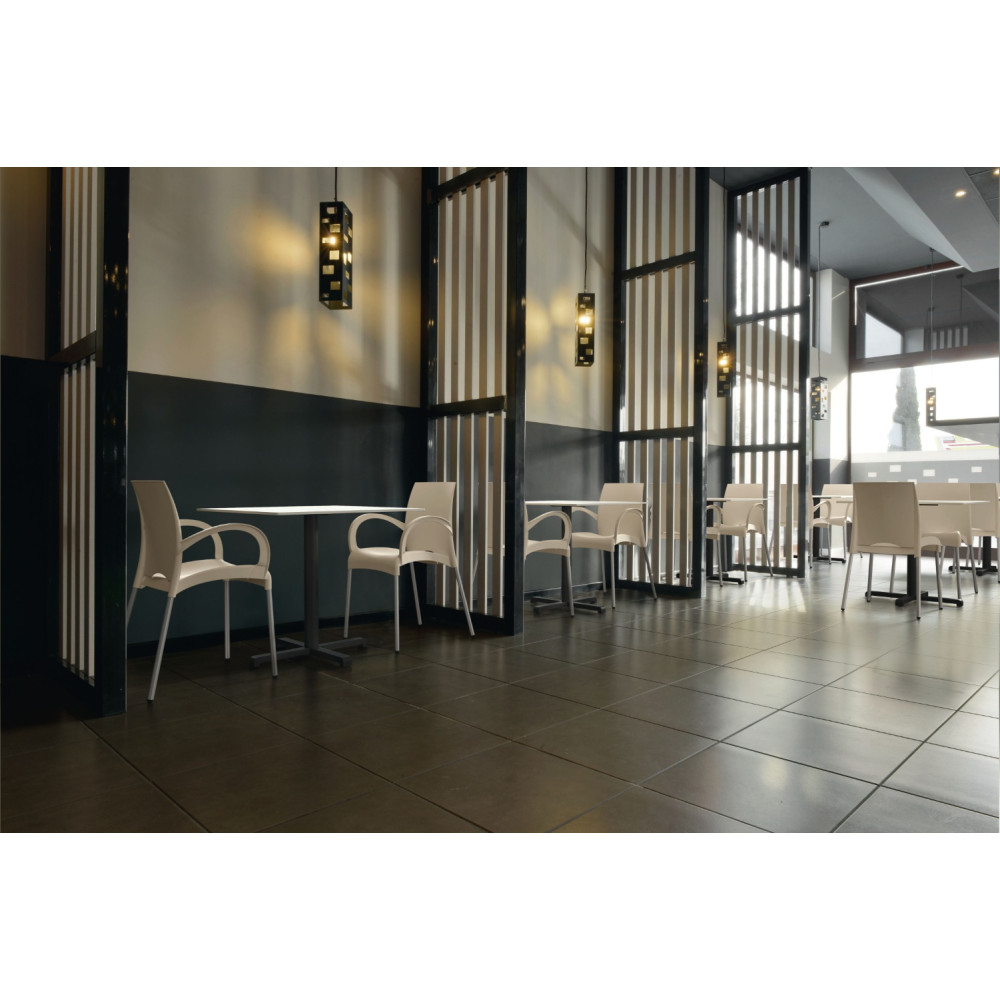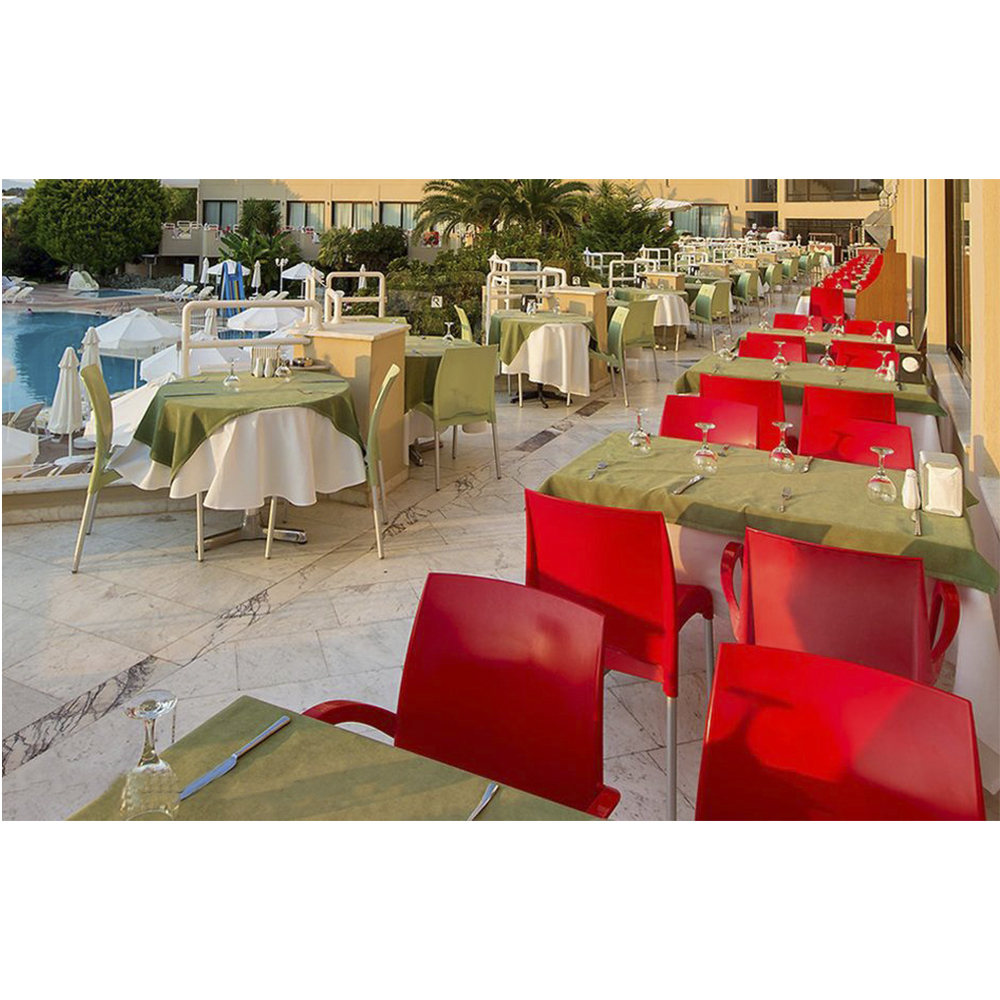 Stylischer Vital-K-Stuhl mit komfortabler anatomischer Form, Hergestellt aus mattem, strapazierfähigem Polypropylen mit Beinen aus eloxiertem Aluminium. Der Stuhl kann sowohl drinnen als auch draußen verwendet werden. Materialien sind beständig gegen Temperaturänderungen, Feuchtigkeit, UV-Strahlung. Kann sowohl im Innen- als auch im Außenbereich eingesetzt werden.