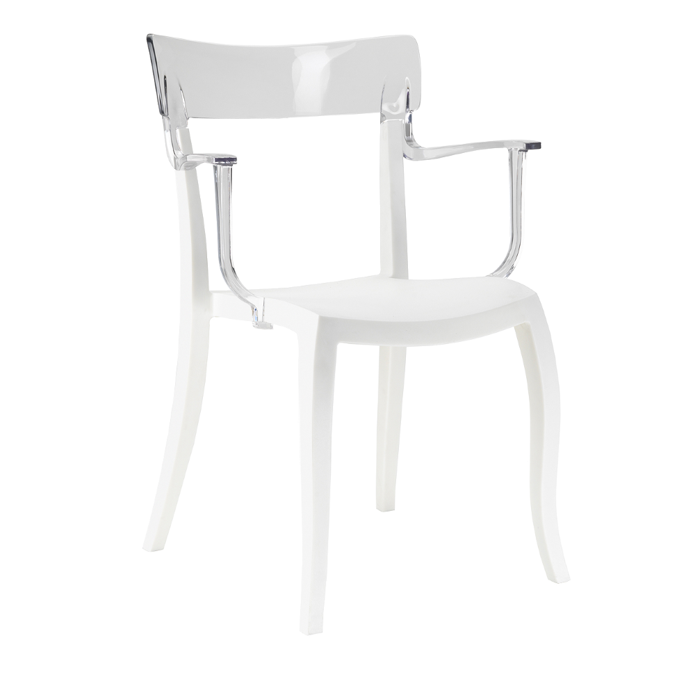Sessel Hera-K ist elegant und vielseitig: Es lässt sich vorteilhaft mit Möbeln und Opulenzen verschiedener Farben und Texturen im Innenraum kombinieren. Dank des prägnanten Designs, der robusten Bauweise und der hohen Festigkeit des Materials kann das Produkt sowohl im Wohnbereich (Essbereich, Schlafzimmer, Wohnzimmer), an öffentlichen Orten (Cafés, Bars, Restaurants) als auch im Außenbereich eingesetzt werden. Sessel ist aus Polypropylen, Stuhllehne und Armlehnen sind aus Polycarbonat, Sesselbeine sind mit Polyurethan-Endkappen ausgestattet. Beständig gegen Feuchtigkeit, UV-Strahlung, Temperaturänderungen.
