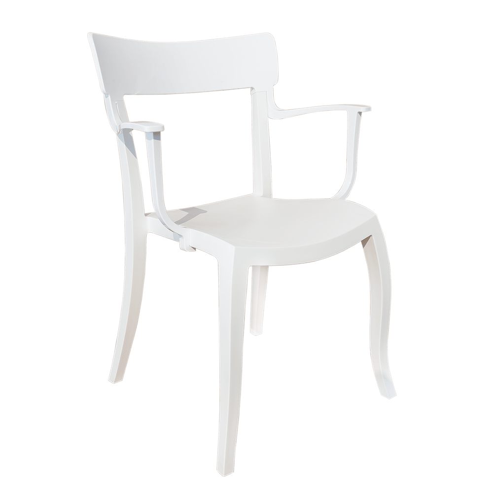 Sessel Hera-K ist elegant und vielseitig: Es lässt sich vorteilhaft mit Möbeln und Opulenzen verschiedener Farben und Texturen im Innenraum kombinieren. Dank des prägnanten Designs, der robusten Bauweise und der hohen Festigkeit des Materials kann das Produkt sowohl im Wohnbereich (Essbereich, Schlafzimmer, Wohnzimmer), an öffentlichen Orten (Cafés, Bars, Restaurants) als auch im Außenbereich eingesetzt werden. Sessel ist aus Polypropylen, Stuhllehne und Armlehnen sind aus Polycarbonat, Sesselbeine sind mit Polyurethan-Endkappen ausgestattet. Beständig gegen Feuchtigkeit, UV-Strahlung, Temperaturänderungen.