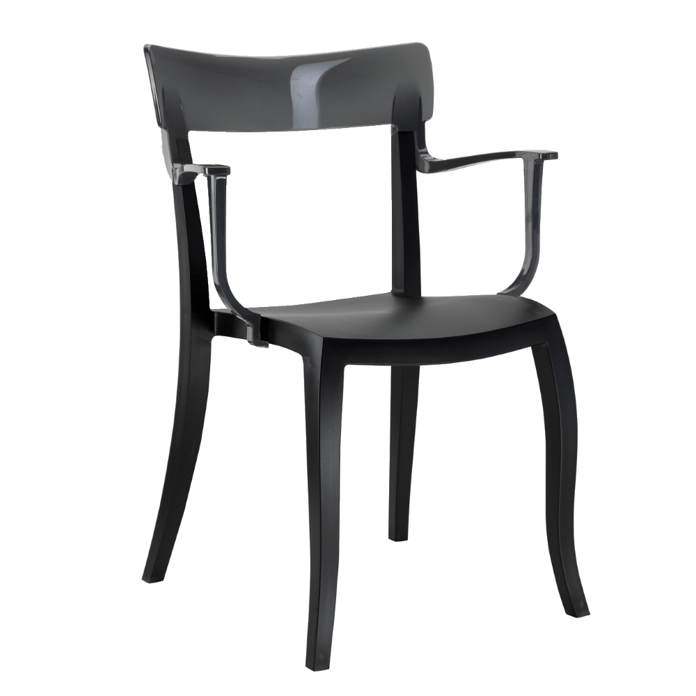 Sessel Hera-K ist elegant und vielseitig: Es lässt sich vorteilhaft mit Möbeln und Opulenzen verschiedener Farben und Texturen im Innenraum kombinieren. Dank des prägnanten Designs, der robusten Bauweise und der hohen Festigkeit des Materials kann das Produkt sowohl im Wohnbereich (Essbereich, Schlafzimmer, Wohnzimmer), an öffentlichen Orten (Cafés, Bars, Restaurants) als auch im Außenbereich eingesetzt werden. Sessel ist aus Polypropylen, Stuhllehne und Armlehnen sind aus Polycarbonat, Sesselbeine sind mit Polyurethan-Endkappen ausgestattet. Beständig gegen Feuchtigkeit, UV-Strahlung, Temperaturänderungen.