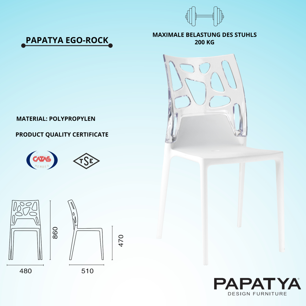 Mit dem eleganten Stuhl Ego-Rock können Sie ein attraktives und modisches Interieur schaffen, er ist perfekt kombinierbar mit einer Vielzahl neuer Farbtöne und Texturen. Das besondere Design von Stuhl verleiht dem Raum Individualität. Komfortables Design und hochfeste Materialien sorgen für Komfort und Bequemlichkeit während des Gebrauchs. Stuhl ist aus Polypropylen, Stuhllehne ist aus Polycarbonat, Sesselbeine sind mit Polyurethanstopfen ausgestattet. Das Produkt ist immun gegen Feuchtigkeit, UV-Strahlung, Temperaturänderungen. Behält ein hervorragendes Aussehen und eine einwandfreie Qualität während der gesamten Lebensdauer. Die Pflege des Stuhls ist einfach und unkompliziert: Es reicht aus, das Oberteil mit einem feuchten Mikrofasertuch abzuwischen und bei starker Verschmutzung Reinigungsmittel ohne scheuernde Stoffe zu verwenden. Stapelbar bis 10 Stk.
