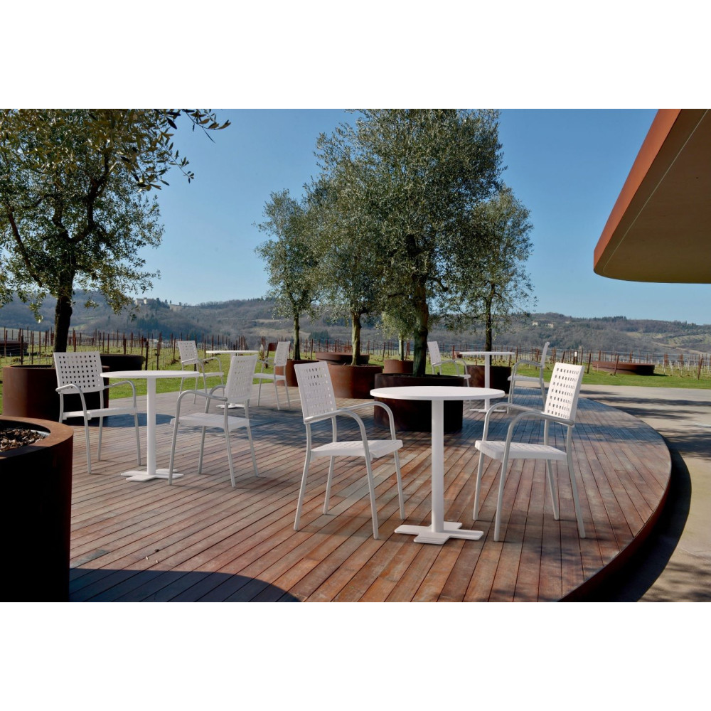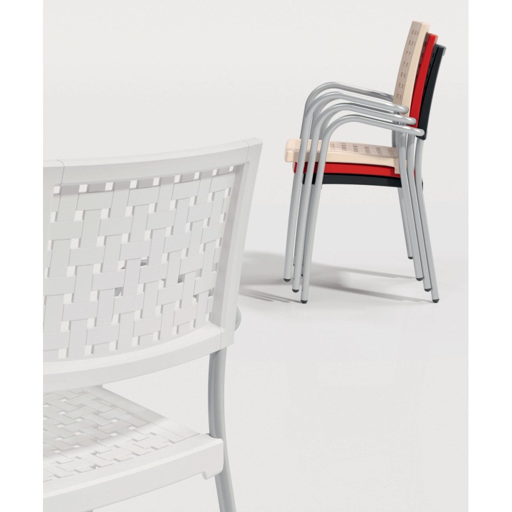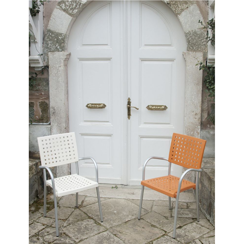 Sessel Karea ist vielseitig und praktisch. Die Basis besteht aus eloxiertem Aluminium, die Stuhllehne und die Sitzfläche aus Polypropylen - Materialien sind beständig gegen mechanische Beschädigungen, Feuchtigkeit und UV-Strahlung. Sesselbeine sind mit rutschfesten Polyurethan-Endkappen ausgestattet. Es passt perfekt in das Interieur der Küche oder des Essbereichs sowie der Sommerterrasse, des Cafés und des Restaurants. Entwickelt für den Innen- und Außenbereich.