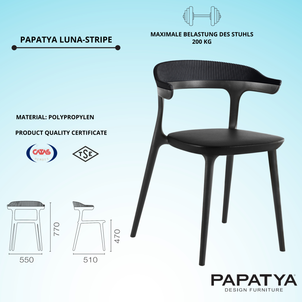 Mit dem eleganten Sessel Luna-Stripe gestalten Sie ein attraktives und modisches Interieur. Sessel ist perfekt kombinierbar mit einer Vielzahl neuer Farbnuancen und Texturen. Sein spezielles Design verleiht dem Raum Persönlichkeit, und seine perfekte Passform und die hochfesten Materialien geben Ihnen ein Gefühl von Komfort und Sicherheit während des Gebrauchs. Der Sessel besteht aus glasfaserverstärktem Polypropylen mit Polyurethanstopfen an den Beinen. Das Produkt ist immun gegen Feuchtigkeit, Temperaturänderungen, UV-Strahlung und gewährleistet so die Erhaltung der ursprünglichen Eigenschaften für mehrere Jahre. Kann im Innen- und Außenbereich verwendet werden. Einfachheit und Pflegeleichtigkeit: Es reicht aus, mit einem feuchten Mikrofasertuch abzuwischen und bei starker Verschmutzung Reinigungsmittel zu verwenden, die keine abrasiven Materialien enthalten.