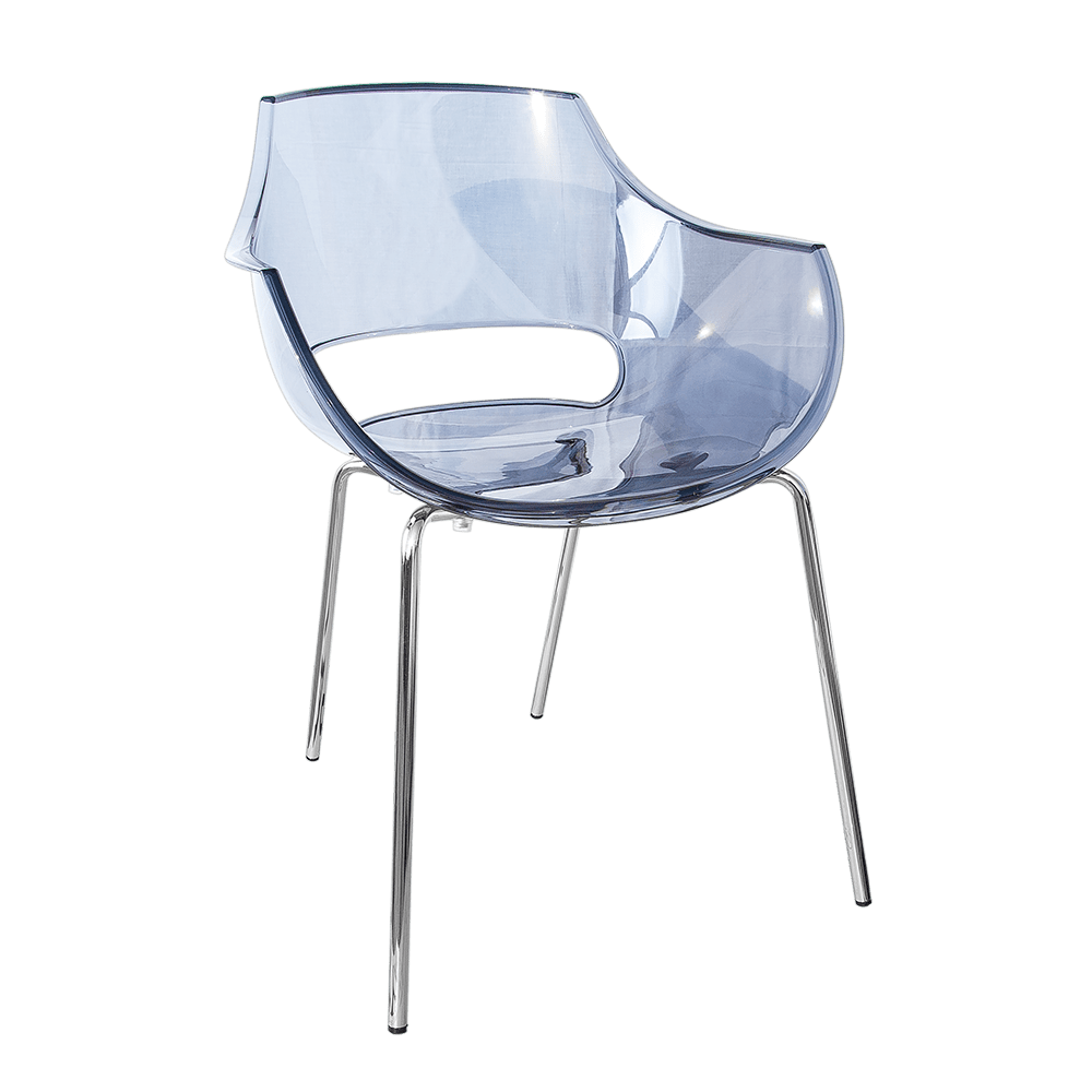 Halbrunder Designer Sessel Opal mit ergonomischer Form, ausgestattet mit bequemer Sitzfläche und Rückenlehne. Der Seamless Sessel besteht aus transparentem Polycarbonat, einem langlebigen Material, das widerstandsfähig gegen Feuchtigkeit, Kratzer und mechanische Beschädigungen ist. Sesselbeine verchromt, glänzend, ausgestattet mit rutschfesten Polyurethan-Endkappen. Der Sessel fügt sich harmonisch in das Interieur des Wohnzimmers, Schlafzimmers, der Küche und des Essbereichs ein. Es kann verwendet werden, um die Räumlichkeiten eines Cafés, Restaurants, Arbeitszimmers oder Büros einzurichten. Sessel wird nur für den Innenbereich empfohlen.