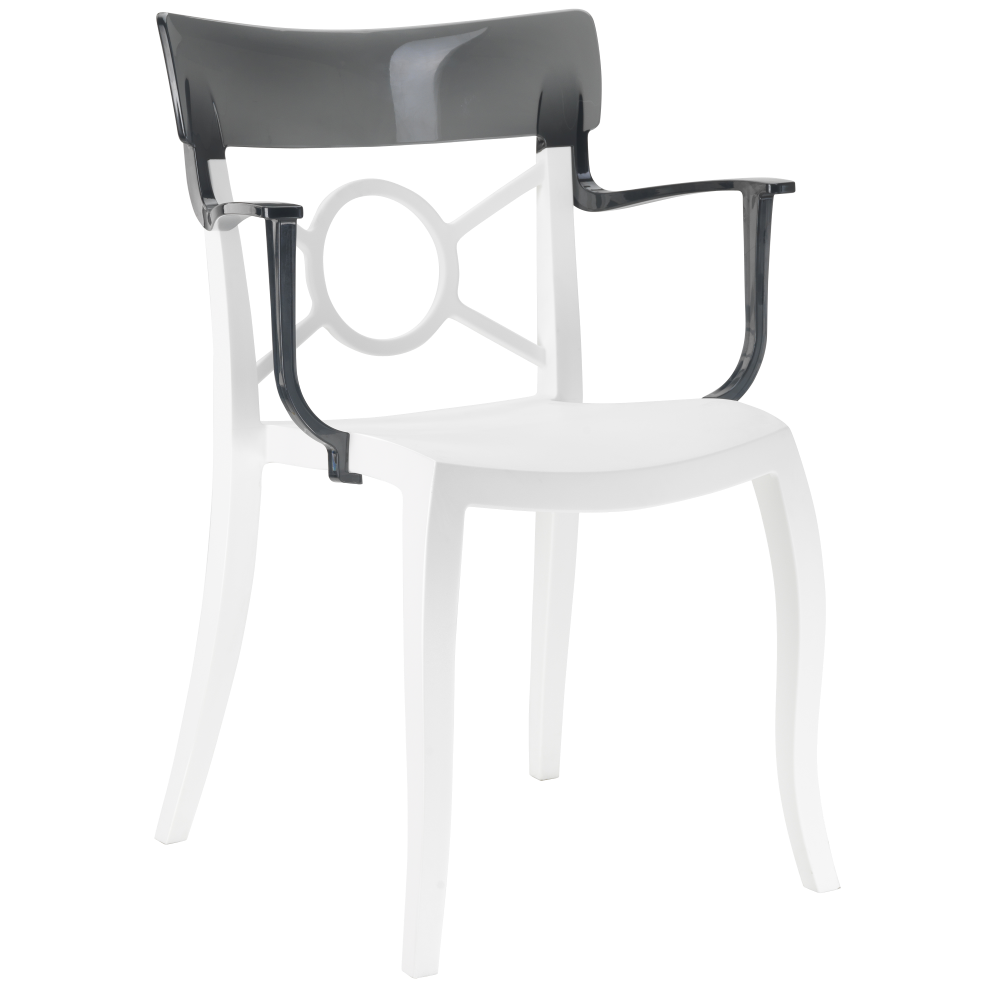 Sessel Opera-K sieht dank der gelungenen Kombination aus Form, Farbe und Textur elegant und originell aus. Die Rücken- und Armlehnen des Oberteils bestehen aus Polycarbonat, die Basis aus Polypropylen, an den Beinen befinden sich rutschfeste Polyurethanstopfen. Die Materialien sind langlebig, widerstandsfähig gegen Kratzer, mechanische Beschädigungen, Feuchtigkeit und UV-Strahlung. Es sieht in verschiedenen Innenräumen von Wohnzimmern, Schlafzimmern, Küchen und Essbereichen schön und stilvoll aus und füllt auch perfekt die Sommerterrasse, Cafés und Restaurants. Entwickelt für den Innen- und Außenbereich.