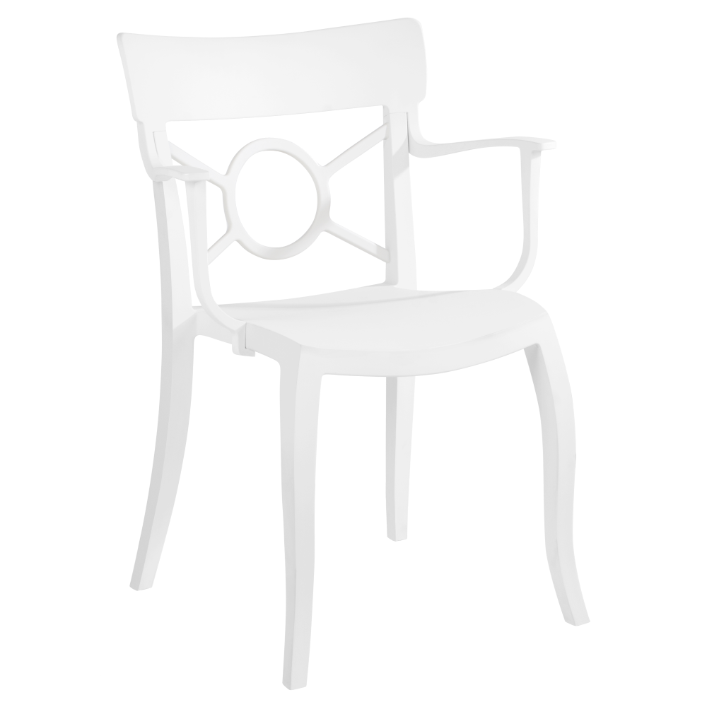 Sessel Opera-K sieht dank der gelungenen Kombination aus Form, Farbe und Textur elegant und originell aus. Die Rücken- und Armlehnen des Oberteils bestehen aus Polycarbonat, die Basis aus Polypropylen, an den Beinen befinden sich rutschfeste Polyurethanstopfen. Die Materialien sind langlebig, widerstandsfähig gegen Kratzer, mechanische Beschädigungen, Feuchtigkeit und UV-Strahlung. Es sieht in verschiedenen Innenräumen von Wohnzimmern, Schlafzimmern, Küchen und Essbereichen schön und stilvoll aus und füllt auch perfekt die Sommerterrasse, Cafés und Restaurants. Entwickelt für den Innen- und Außenbereich.