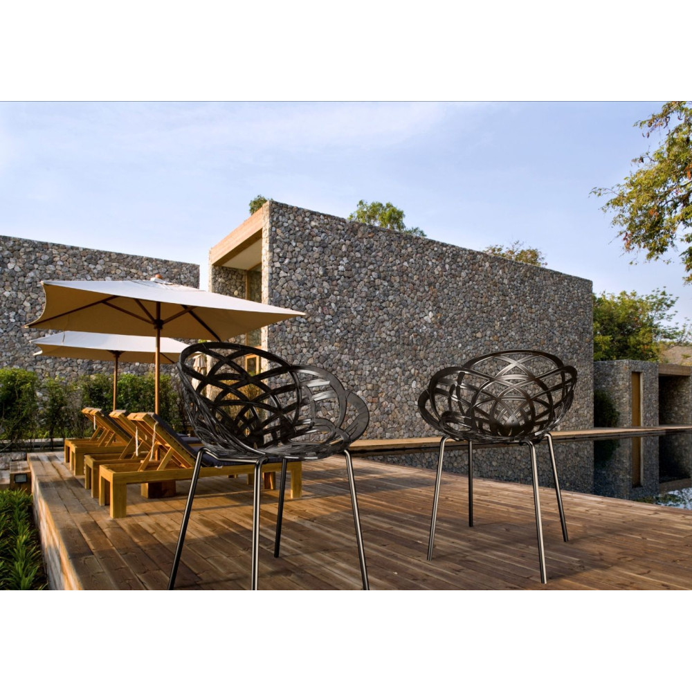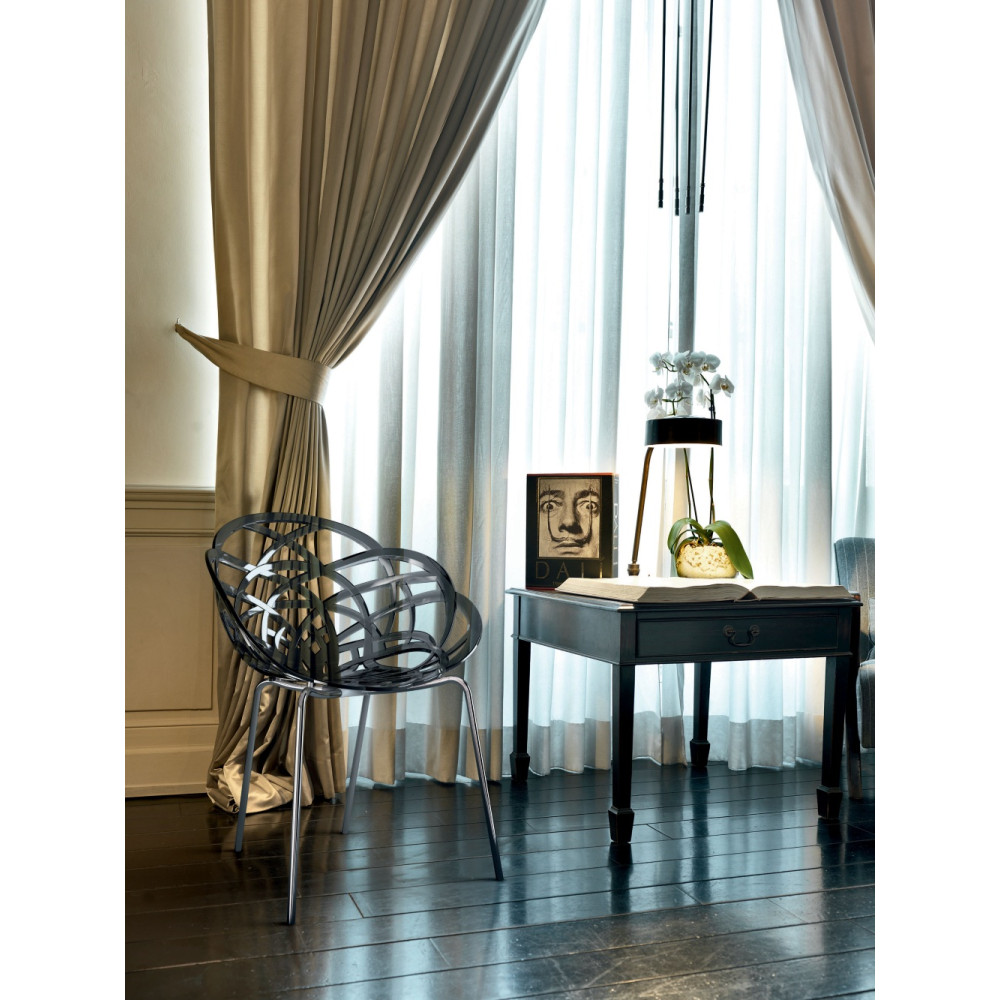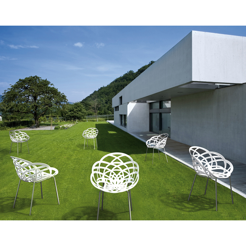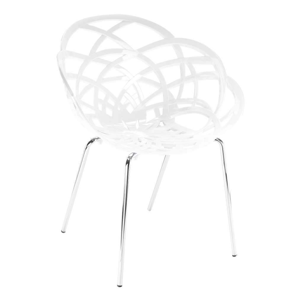 Der durchbrochen gearbeitete Sessel Flora-ML erinnert an die sanfte Blume. Die sanften Rundungen des Stuhls sorgen für ein bequemes Sitzen und Stuhllehne, stabile Sesselbeine, machen ihn so bequem wie möglich. Die Sitzfläche ist aus Polycarbonat, das Untergestell aus Metall, verchromt, Sesselbeine sind mit rutschfesten Polyurethan-Endkappen ausgestattet. Der Sessel besteht aus strapazierfähigen Materialien, die kratzfest, mechanisch und feuchtigkeitsbeständig sind. Bemerkenswert füllt das Innere des Wohnzimmers, Schlafzimmers, Essbereichs. Es kann für die Einrichtung der Räumlichkeiten eines Cafés oder Restaurants verwendet werden. Empfohlen für den Innenbereich.