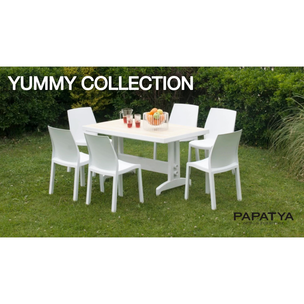 Yummy-Stuhl wird dank der gelungenen Kombination aus Form, Farbe und Verarbeitung, die die Holzstruktur imitiert, zu einem stilvollen Akzent in fast jedem Interieur. Eine bequeme Rückenlehne und stabile Beine sorgen für optimalen Komfort beim Gebrauch und kleinere Kratzer, die während des Gebrauchs entstehen können, sind nahezu unsichtbar. Das einteilige Produkt aus Polypropylen weist eine hohe Festigkeit und Verschleißfestigkeit auf, ist beständig gegen niedrige und hohe Temperaturen sowie Feuchtigkeit. Der Stuhl ist für den Innen- und Außenbereich konzipiert und hält erheblichen Belastungen stand. Behält während der gesamten Lebensdauer ein hervorragendes Aussehen und einwandfreie Qualität.