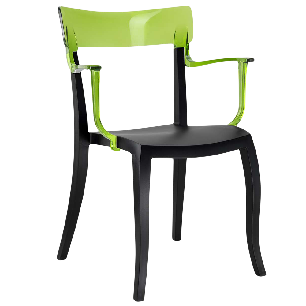 Der Sessel Hera-K ist elegant und vielseitig: Er kann vorteilhaft mit Möbeln und Oberflächen verschiedener Farben und Texturen im Innenbereich kombiniert werden. Dank des lakonischen Designs, der komfortablen Konstruktion und der hohen Festigkeit des Materials kann das Produkt in Wohnbereichen (Essbereich, Schlafzimmer, Wohnzimmer), öffentlichen Orten (Cafés, Bars, Restaurants) sowie im Freien verwendet werden. Der Stuhl besteht aus Polypropylen, die Rücken- und Armlehnen aus Polycarbonat, die Beine sind mit Polyurethanstopfen ausgestattet. Beständig gegen Feuchtigkeit, UV-Strahlung, Temperaturänderungen. Beschreibung und Anwendung: