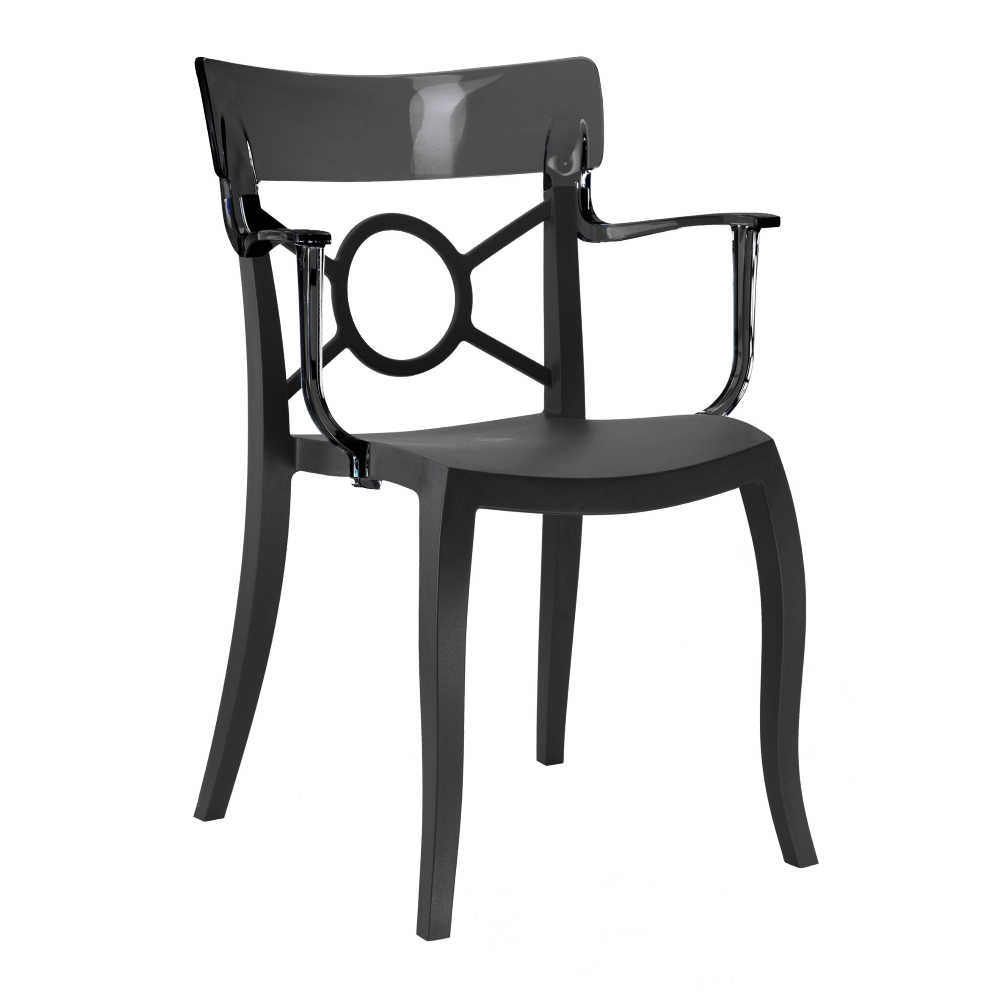 Sessel Opera-K sieht dank der gelungenen Kombination aus Form, Farbe und Textur elegant und originell aus. Die Rücken- und Armlehnen des Oberteils bestehen aus Polycarbonat, die Basis aus Polypropylen, an den Beinen befinden sich rutschfeste Polyurethanstopfen. Die Materialien sind langlebig, widerstandsfähig gegen Kratzer, mechanische Beschädigungen, Feuchtigkeit und UV-Strahlung. Es sieht in verschiedenen Innenräumen von Wohnzimmern, Schlafzimmern, Küchen und Essbereichen schön und stilvoll aus und füllt auch perfekt die Sommerterrasse, Cafés und Restaurants. Entwickelt für den Innen- und Außenbereich.