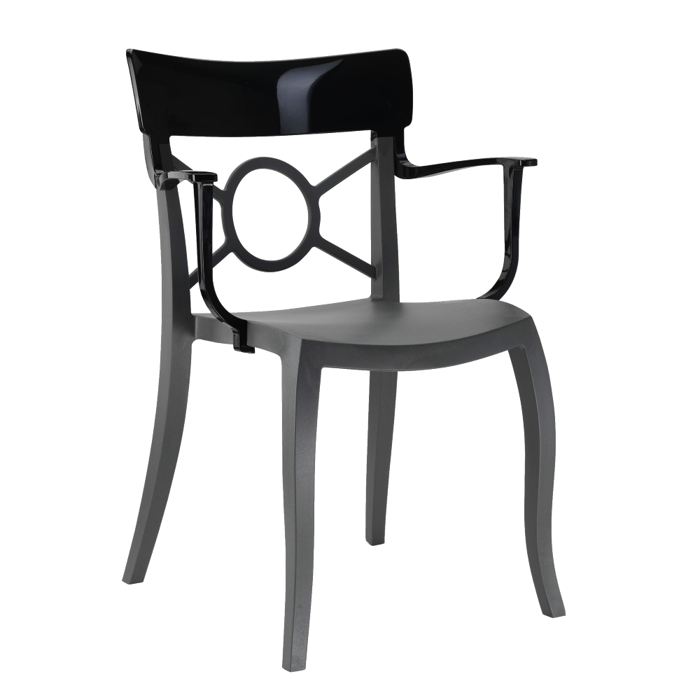 Sessel Opera-K sieht dank der gelungenen Kombination aus Form, Farbe und Textur elegant und originell aus. Die Rücken- und Armlehnen des Oberteils bestehen aus Polycarbonat, die Basis aus Polypropylen, an den Beinen befinden sich rutschfeste Polyurethanstopfen. Die Materialien sind langlebig, widerstandsfähig gegen Kratzer, mechanische Beschädigungen, Feuchtigkeit und UV-Strahlung. Es sieht in verschiedenen Innenräumen von Wohnzimmern, Schlafzimmern, Küchen und Essbereichen schön und stilvoll aus und füllt auch perfekt die Sommerterrasse, Cafés und Restaurants. Entwickelt für den Innen- und Außenbereich.