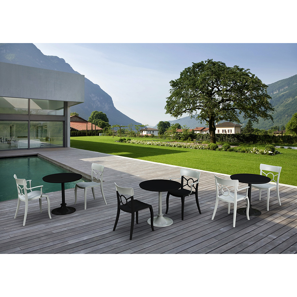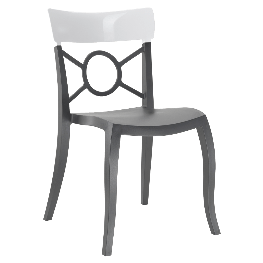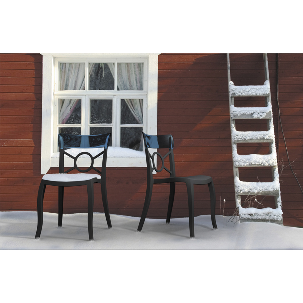 Stuhl Opera-S wirkt elegant und originell, dank der gelungenen Kombination aus Form, Farbe und Textur. Rückenlehnen-Oberteil aus Polycarbonat, Polypropylen-Basis, rutschfeste Polyurethan-Plugs an den Beinen - Materialien sind langlebig, widerstandsfähig gegen Kratzer, mechanische Beschädigungen, Feuchtigkeit, UV-Strahlung. Es sieht in verschiedenen Innenräumen von Wohnzimmern, Schlafzimmern, Küchen und Essbereichen schön und stilvoll aus und füllt auch perfekt die Sommerterrasse, Cafés und Restaurants. Entwickelt für den Innen- und Außenbereich.