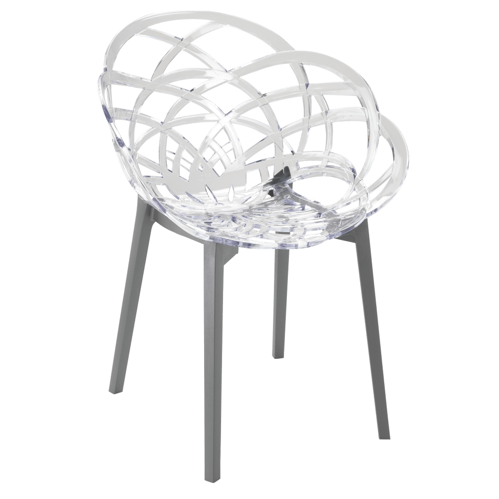 Der durchbrochene Sessel Flora erinnert an die zarte Blume. Die sanften Rundungen des Stuhls sorgen für ein bequemes Sitzen und Stuhllehne, stabile Sesselbeine, machen ihn so bequem wie möglich. Die Sitzfläche besteht aus Polycarbonat, die Basis aus Polypropylen, Sesselbeine sind mit rutschfesten Polyurethan-Endkappen ausgestattet. Der Sessel besteht aus strapazierfähigen Materialien, die kratzfest, mechanisch und feuchtigkeitsbeständig sind. Wunderbar für Innenraum von Wohnzimmer, Schlafzimmer, Essbereich. Es kann für die Einrichtung der Räumlichkeiten eines Cafés oder Restaurants verwendet werden. Kann im Innen- und Außenbereich verwendet werden.