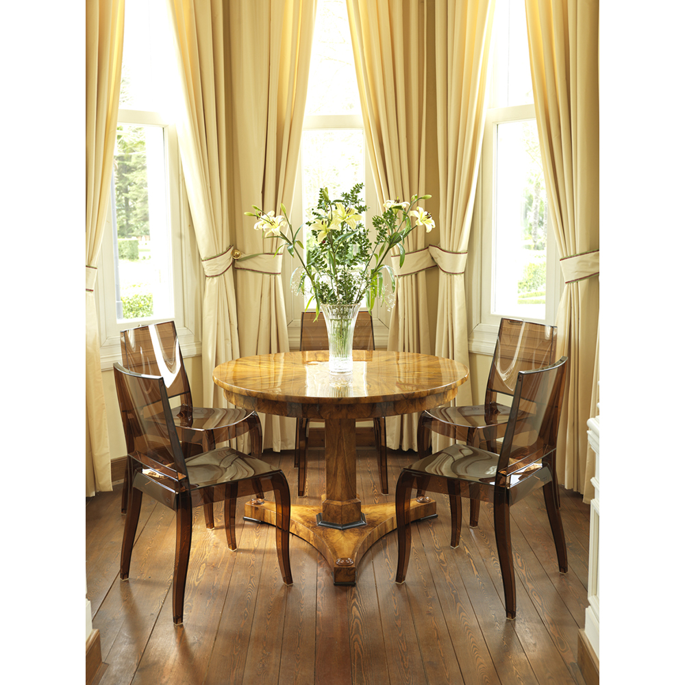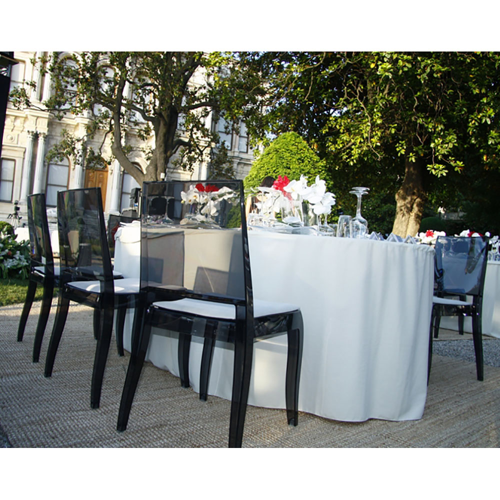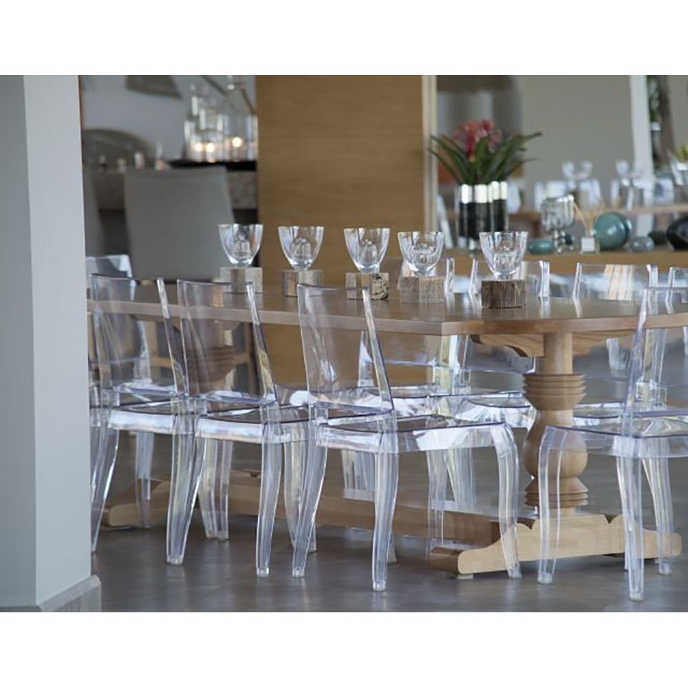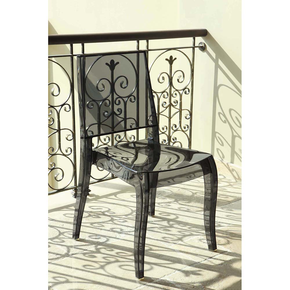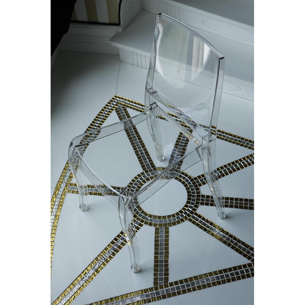 Der aus transparentem Polycarbonat gefertigte Stuhl Class-X fügt sich dank seines nahezu unsichtbaren Designs perfekt in jedes Interieur ein. Ideal für kleine Räume, um den Raum optisch zu erweitern. Das Produkt kann auch im Außenbereich verwendet werden. Polycarbonat zeichnet sich durch hohe Festigkeit, Beständigkeit gegen mechanische Beschädigungen, Kratzer, Feuchtigkeit und UV-Strahlung aus. Der Stuhl ist pflegeleicht: Mit einem feuchten Mikrofasertuch abwischen. Bei starker Verschmutzung nicht scheuernde Reinigungsmittel verwenden. Das Modell hat ein geringes Gewicht, Sesselbeine sind mit Polyurethan-Stöpseln ausgestattet. Um den Stuhl bequemer zu machen, werden weiche Kissen verwendet.