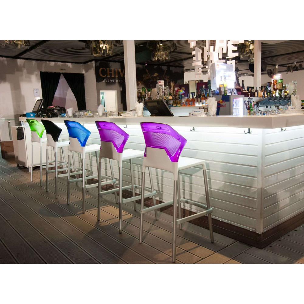 Mit dem Barstuhl Ego-S können Sie ein attraktives und modisches Interieur schaffen, es ist perfekt kombinierbar mit einer Vielzahl neuer Farbtöne und Texturen. Das besondere Design von Stuhl verleiht dem Raum Individualität. Komfortables Design und hochfeste Materialien sorgen für Komfort und Bequemlichkeit während des Gebrauchs. Die Sitzfläche ist aus Polypropylen, Stuhllehne aus Polycarbonat, Aluminium Sesselbeine sind mit Polyurethanstopfen ausgestattet. Stuhlsitz Stuhlbisfuß mit weicher Polsterung.. Das Produkt ist immun gegen Feuchtigkeit, UV-Strahlung, Temperaturänderungen. Behält ein hervorragendes Aussehen und eine einwandfreie Qualität während der gesamten Lebensdauer. Die Pflege des Stuhls ist einfach und unkompliziert: Es reicht aus, das Oberteil mit einem feuchten Mikrofasertuch abzuwischen und bei starker Verschmutzung Reinigungsmittel ohne scheuernde Stoffe zu verwenden.