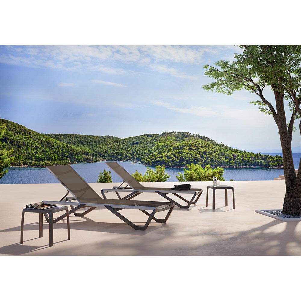 Sonnenliege Wave ist unverzichtbar beim Entspannen im Grünen, am Meer oder am Pool. Die innovative Beschichtung aus hochfestem Netzgewebe des führenden französischen Herstellers Serge Ferrari ist angenehm im Griff und zuverlässig im Betrieb, sie ist leicht und pflegeleicht. Die Bespannung besteht aus dem luftdurchlässigen Gewebe „Breathing“. Es dehnt oder schrumpft nicht, hat keine Angst vor Feuchtigkeit, trocknet schnell, verblasst nicht in der Sonne und fühlt sich auch unter den sengenden Sonnenstrahlen kühl an. Die Beschichtung hat antibakterielle Eigenschaften, sie enthält natürliche umweltfreundliche Komponenten. Das Material besteht aus eloxiertem Aluminium: Das Material zeichnet sich durch einen natürlichen metallischen Glanz aus, der dem Produkt Eleganz und Seriosität verleiht. Die Rückenlehne lässt sich über die Nuten auf der Rückseite des Sonnenlieges verstellen: Sie nimmt vier Positionen ein. Das Produkt ist immun gegen Feuchtigkeit, UV-Strahlung, extreme Temperaturen und Korrosion. Stapelbar bis 20 Stk.