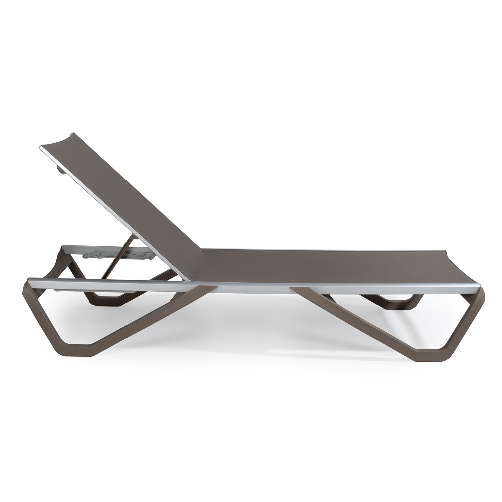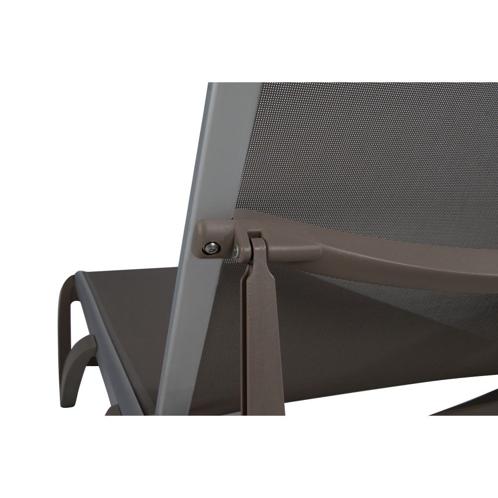 Sonnenliege Wave ist unverzichtbar beim Entspannen im Grünen, am Meer oder am Pool. Die innovative Beschichtung aus hochfestem Netzgewebe des führenden französischen Herstellers Serge Ferrari ist angenehm im Griff und zuverlässig im Betrieb, sie ist leicht und pflegeleicht. Die Bespannung besteht aus dem luftdurchlässigen Gewebe „Breathing“. Es dehnt oder schrumpft nicht, hat keine Angst vor Feuchtigkeit, trocknet schnell, verblasst nicht in der Sonne und fühlt sich auch unter den sengenden Sonnenstrahlen kühl an. Die Beschichtung hat antibakterielle Eigenschaften, sie enthält natürliche umweltfreundliche Komponenten. Das Material besteht aus eloxiertem Aluminium: Das Material zeichnet sich durch einen natürlichen metallischen Glanz aus, der dem Produkt Eleganz und Seriosität verleiht. Die Rückenlehne lässt sich über die Nuten auf der Rückseite des Sonnenlieges verstellen: Sie nimmt vier Positionen ein. Das Produkt ist immun gegen Feuchtigkeit, UV-Strahlung, extreme Temperaturen und Korrosion. Stapelbar bis 20 Stk.ук.