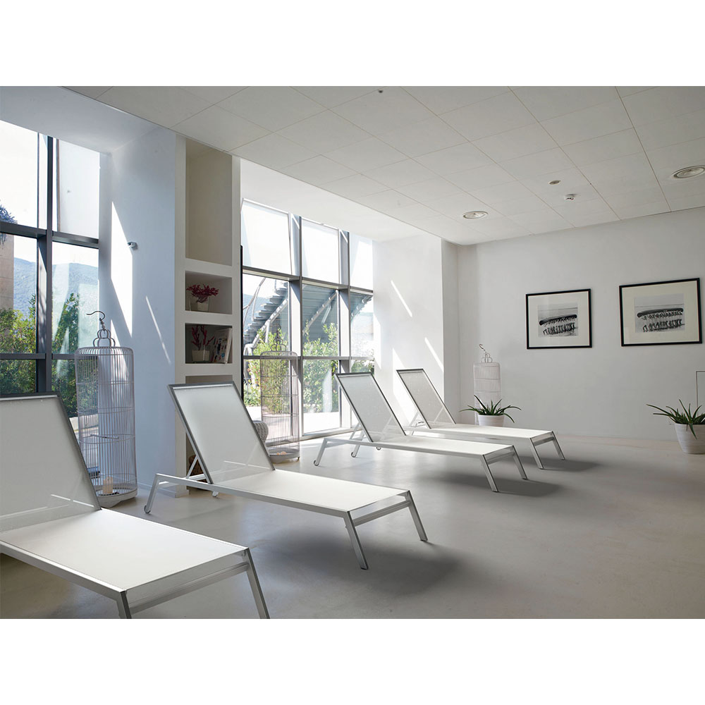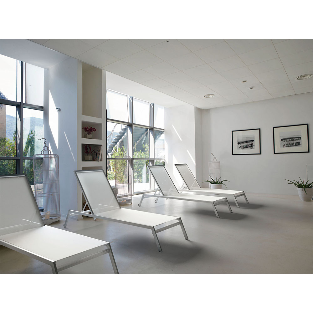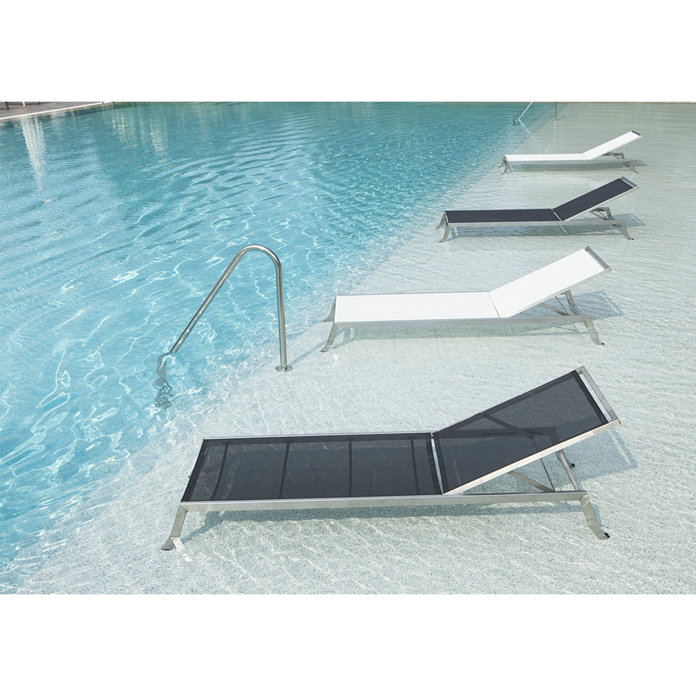 € 218.75 gespartKorpus Sonnenliegea Zen ist aus Edelstahl gefertigt. Oberteil aus speziellem Mesh-Material. Dank der Hinterräder lässt er sich bequem bewegen. Mesh-Webstoff des führenden französischen Herstellers Serge Ferrari hat keine Angst vor Feuchtigkeit, atmet, ist leicht zu reinigen, trocknet schnell und bleibt auch unter sengender Sonne kühl. Sein Vorteil: hohe Festigkeit und Verschleißfestigkeit, UV-Beständigkeit, Schimmel- und Pilzresistenz. All dies sorgt für die einzigartige bisle Langlebigkeit unseres Sonnenlieges.