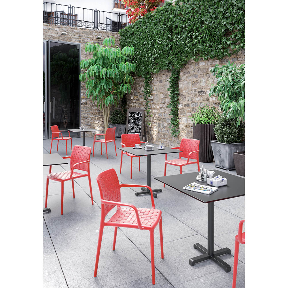 Dank der harmonischen Kombination aus Form und holzähnlicher Holzstruktur wird Stuhl Fame-S zu einem hellen Akzent im Inneren eines Cafés, einer Sommerterrasse und in der Landschaft eines privaten Bereichs. Das Produkt hat ein Monoblock-Design, es ist sicher und praktisch. Polypropylen, aus dem das Modell besteht, ist beständig gegen Temperaturänderungen, Feuchtigkeit und UV-Strahlung. Stuhl ist für den Innen- und Außenbereich konzipiert und behält über die gesamte Lebensdauer seine hervorragende Optik und einwandfreie Qualität.
