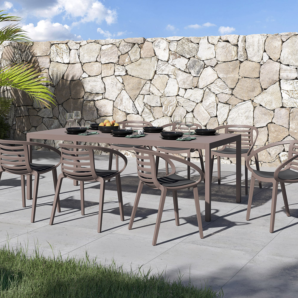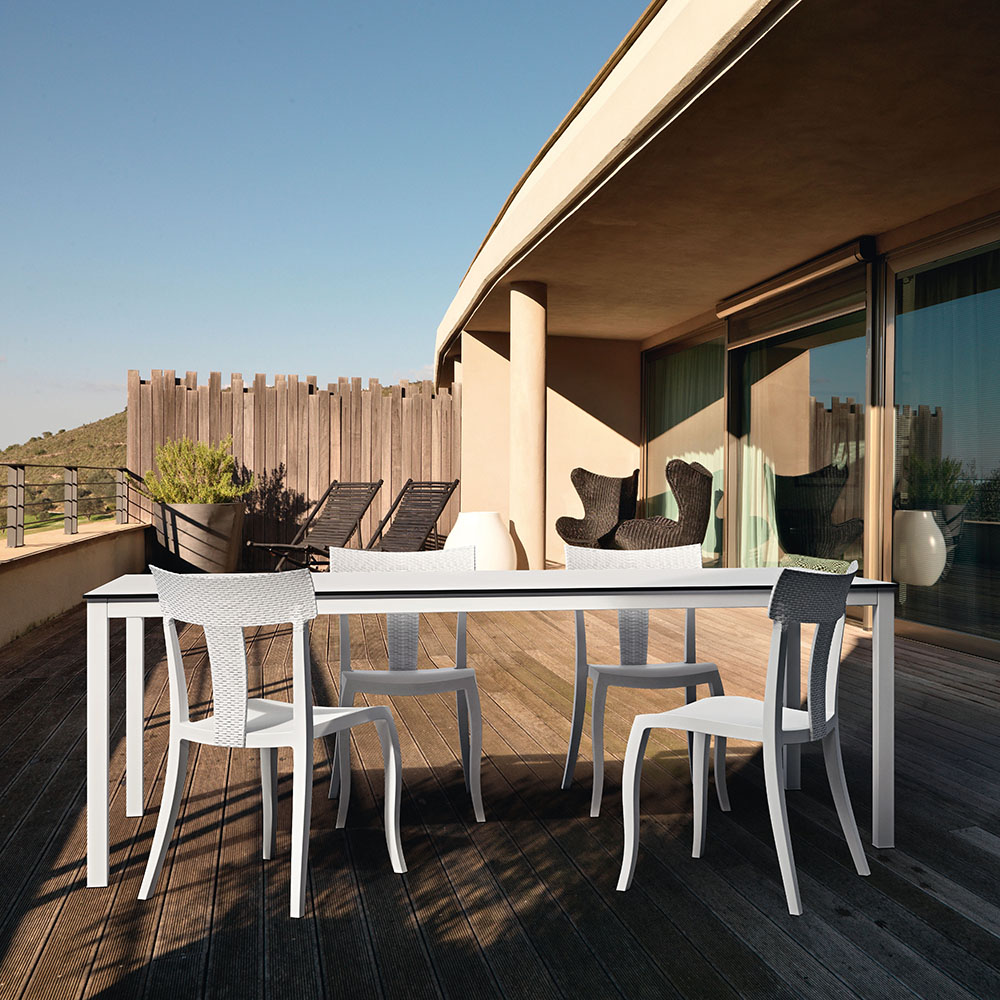 Tisch Maxima. Maximale Stabilität und Festigkeit. Dank seiner klaren Linien fügt sich MAXIMA perfekt in ein modernes Interieur ein und kann sowohl im Innen- als auch im Außenbereich eingesetzt werden. Erhältlich in mehreren Basis- und Arbeitsplattenoptionen, die kombiniert werden können. Aus Preislistea können Sie sich eine passende Kombination aussuchen. Alle Papatya-Produkte, die mit der Berechnung des Einsatzes im öffentlichen Raum hergestellt werden, sind für maximale Belastungen ausgelegt.