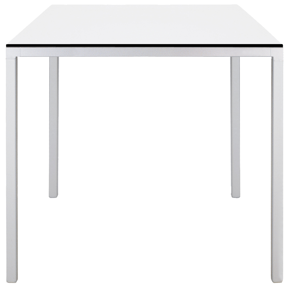 Leichtigkeit, Eleganz und Schlichtheit vereint. Klare Linien in seinem eleganten Gestell betonen zusammen mit hochwertigen Materialien die harmonischen Formen des Tischgestells. Das Metall ist verchromt oder pulverbeschichtet (für Straßen). Tischplatte – laminiertes MDF oder einteilige Polymerplatte.