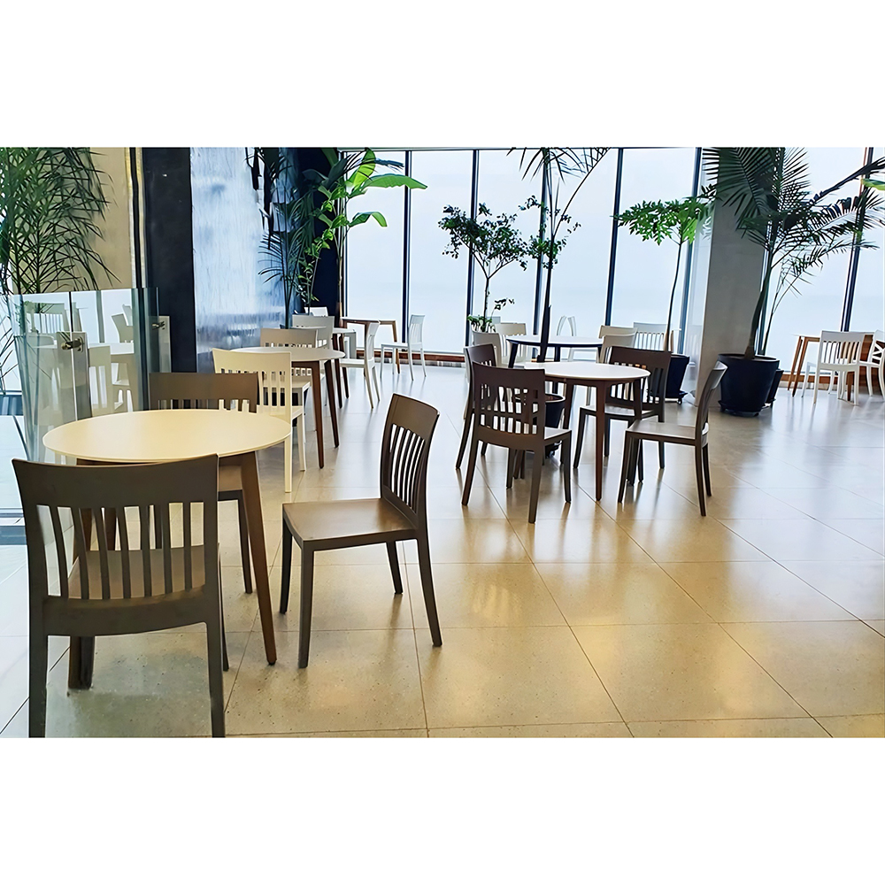 Stuhl Eden-S im klassischen Stil ist vielseitig und praktisch. Das Modell passt ideal in die Innenarchitektur, die Unterteilung, die Sommerterrasse. Komfort und Bequemlichkeit beim Sitzen wird durch die ergonomische Gestaltung des Produktes gewährleistet: hohe Stuhllehne, stabile Sesselbeine. Polypropylen, aus dem Stuhl hergestellt wird, ist immun gegen Feuchtigkeit, UV-Strahlung und Temperaturschwankungen. Kann im Innen- und Außenbereich verwendet werden. Das Produkt wird Ihnen jahrelang dienen, ohne seine äußeren Eigenschaften und Haltbarkeit zu verlieren.